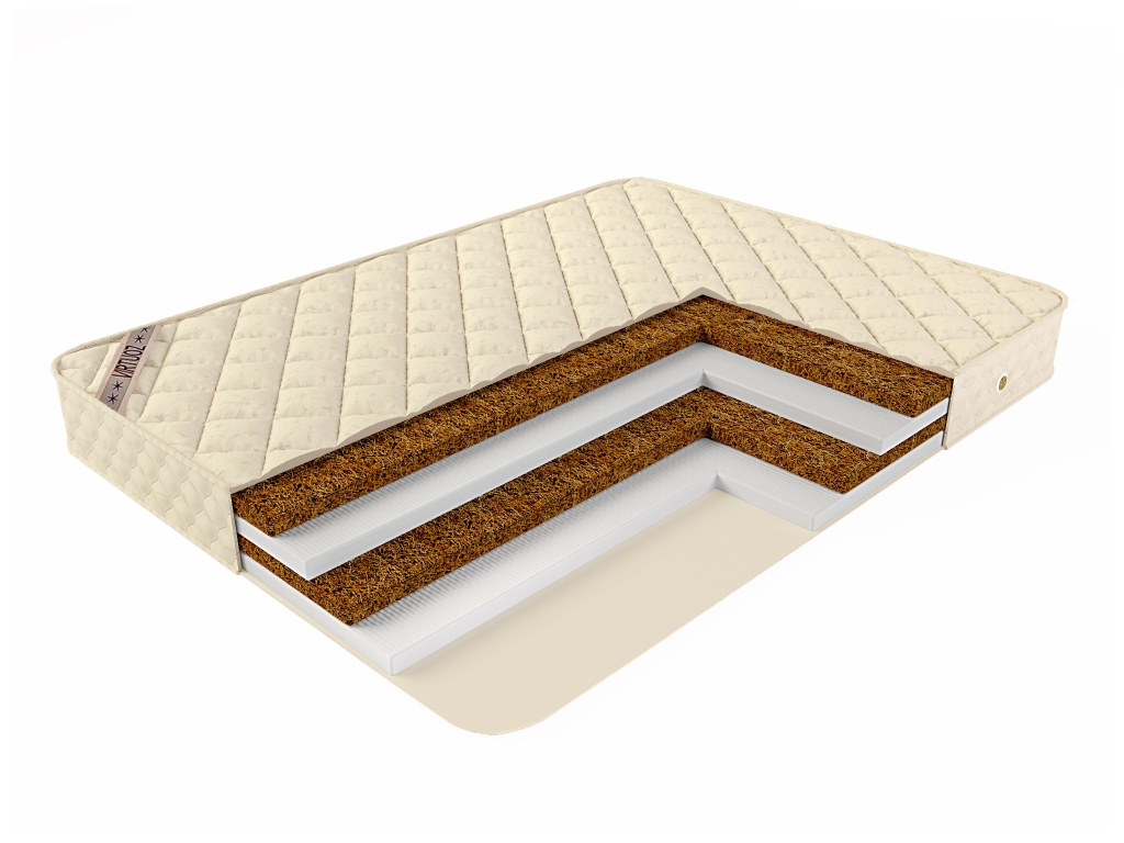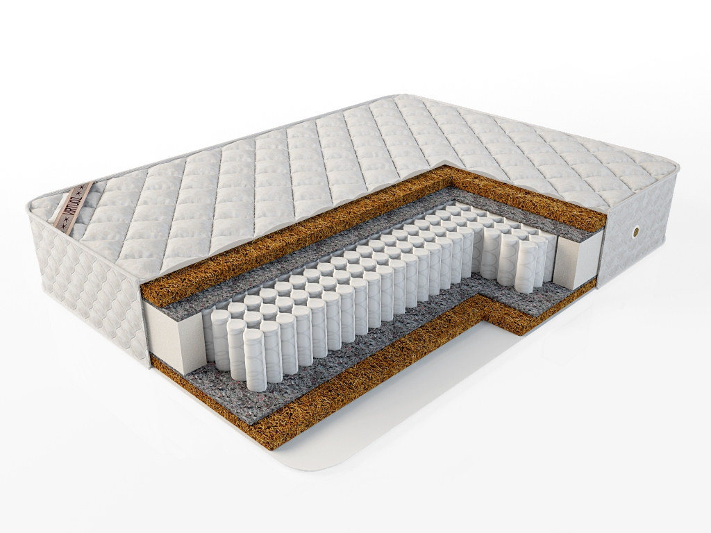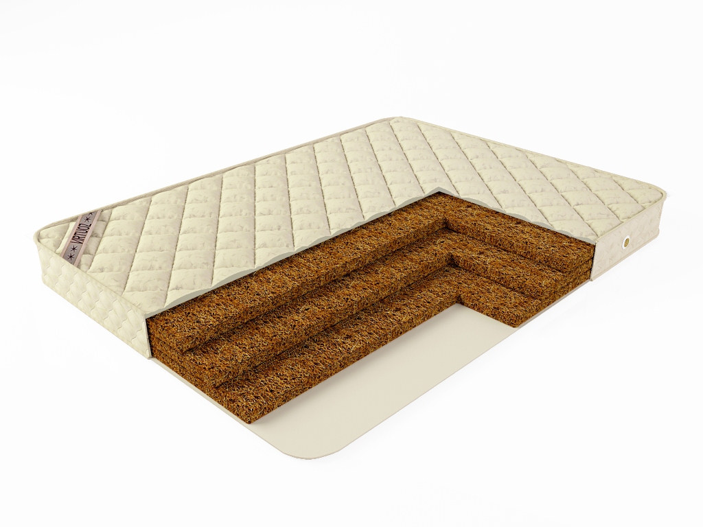 В основе ортопедического матраса Виртуоз Биатрич натуральное кокосовое волокно. Жесткие беспружинные кокосовые матрасы широко применяются в ортопедической практике и хорошо подходят людям, нуждающимся в коррекции позвоночника. Матрас является долговечным, прочным, обеспечивает идеальную циркуляцию воздуха и теплообмен.