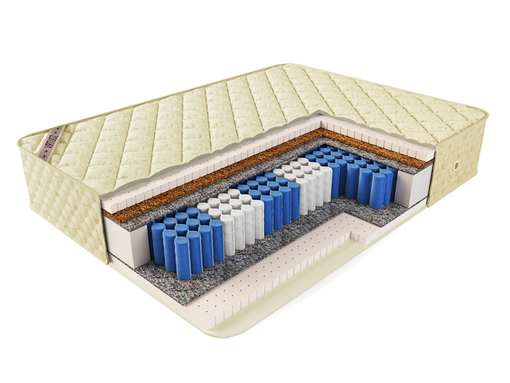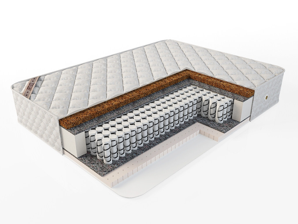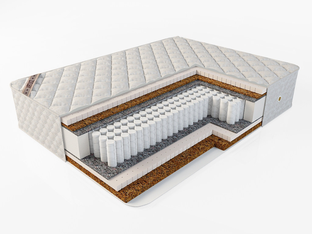 Ортопедический матрас Виртуоз Ария - высокий ортопедический матрас на основе блока независимых пружин с возможностью самостоятельного выбора требуемой жесткости. Натуральные наполнители матраса: натуральный латекс и кокосовое волокно, экологически чистые и долговечные природные материалы.